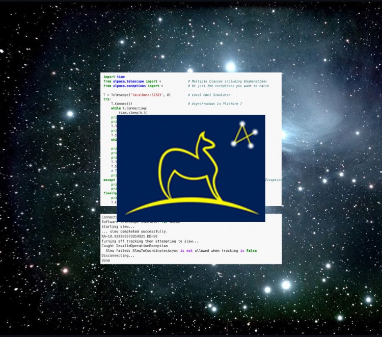 Alpyca (short for "Alpaca for Python") is an open-source Python client library that provides an interface to control ASCOM Alpaca devices over a network. Alpaca is ASCOM’s next-generation protocol that brings platform independence and network transparency to ASCOM device communication.