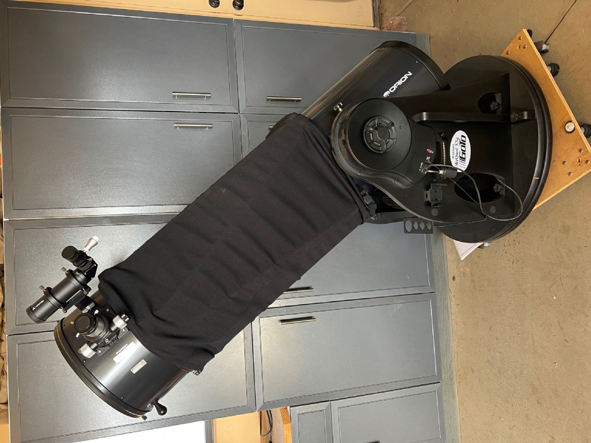 A 14” Dobsonian telescope with eyepieces and accessories. The ...