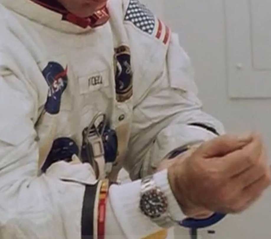 Apollo 14 lunar module pilot Edgar Mitchell wore his personal Rolex GMT-Master chronometer under the sleeve of his spacesuit, as can be seen in this film still taken as he was donning the pressurized garment for launch on Jan. 31, 1971. (Image credit: NASA/RR Auction)
